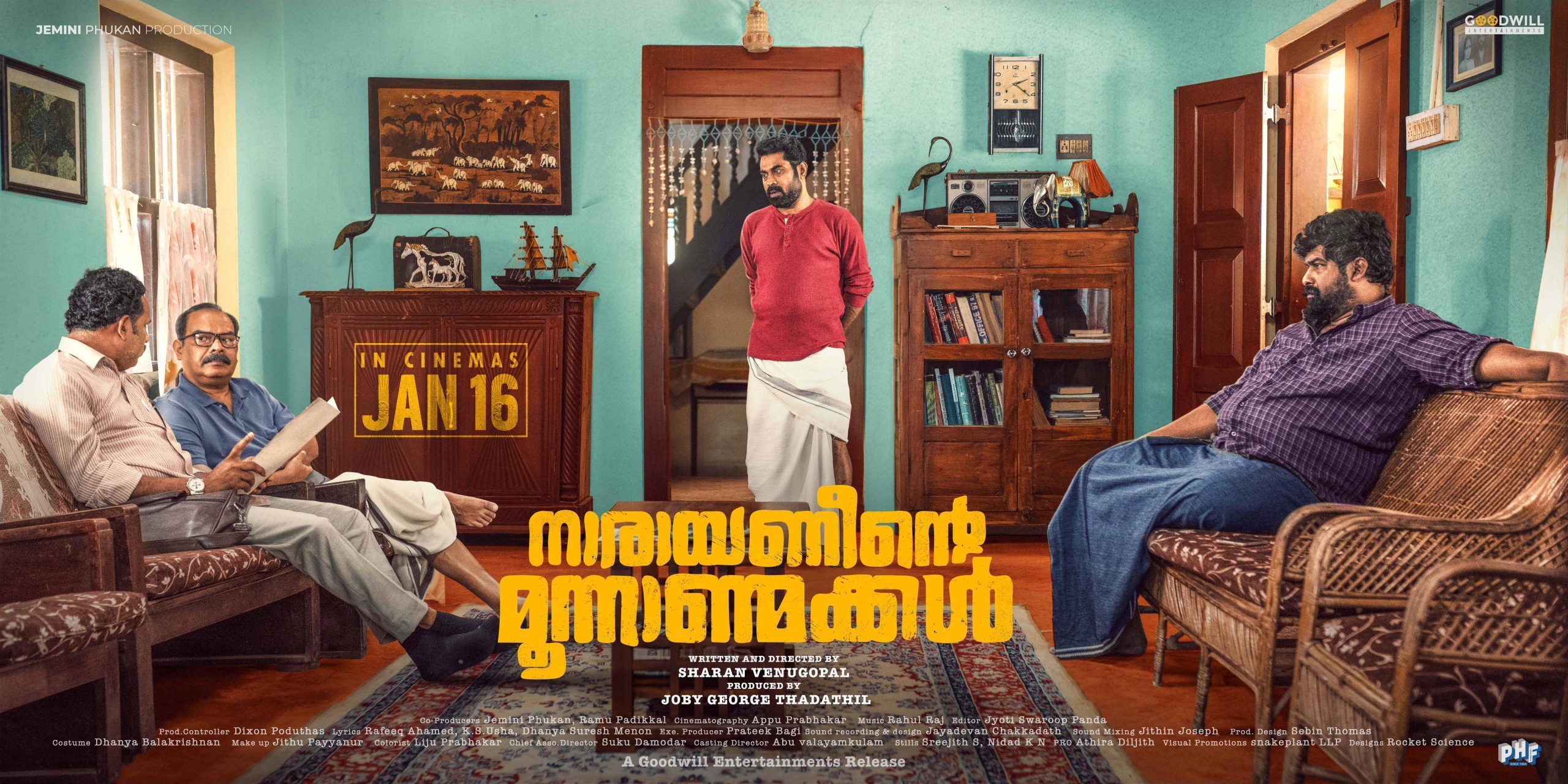 ഒരുപാട് ഡാർക്ക് സീക്രട്ട്സ് ഉള്ള ഒരു പുരാതന കുടുംബത്തിൽ ജീവിക്കുന്ന നാരായണീന്റെ മൂന്ന് ആൺമക്കളുടെ ജീവിതത്തെ അഭ്രപാളിയിൽ കാണാൻ കാത്തിരിക്കുകയാണ് പ്രേക്ഷകർ.യൂട്യൂബിൽ ലഭ്യമായ 37 മിനിറ്റ് ദൈർഖ്യമുള്ള ചിത്രം, ഇൻ്റർനാഷണൽ ഫിലിം ഫെസ്റ്റിവൽ ഓഫ് ഇന്ത്യ (IFFI), ഇൻ്റർനാഷണൽ ഡോക്യുമെൻ്ററി ആൻഡ് ഷോർട്ട് ഫിലിം ഫെസ്റ്റിവൽ ഓഫ് കേരള (IDSFFK) എന്നിവയുൾപ്പെടെ നിരവധി അന്തർദേശീയ മേളകളിൽ പ്രദർശിപ്പിച്ചിരുന്നു. ജനുവരി 16ന് നാരായണീൻ്റെ മൂന്നാൺ മക്കൾ തിയേറ്ററുകളിൽ റിലീസ് ചെയ്യും.